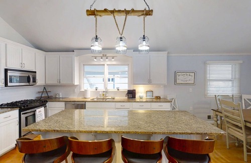 This Fripp Island rental home features 4 bedrooms 3 baths with a 2 large bedrooms on the main level with living area, dining area, and large kitchen with island. The home can sleep up to 12 people. The living room has a sleeper soafa and an additional sofa and gas fireplace. Downstairs has a common area with 2 bedrooms, 1 large bathroom and laundry area. View one of the most beautiful spots on the island for the sunsets from the wrap around porch. No carpet in the home. Enjoy our vacation rental! Amenity Cards are available for anyone over the age of 13 at the cost per season. This amount will be paid separately. We are NOT charging the 12.5% resort fee.