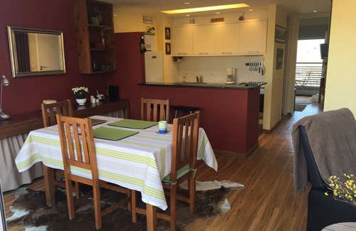 Excellent home for entertaining guests. Sunny living room has fold out couch/bed to provide semi private area to sleep two for a total of four guests and the finest of linens. Open American style kitchen/dining room with great view. Tub/shower in master bath. One step required for wheel chair guests. For handicap needs detail please check January 28, 2013 comments from guest. Super High Speed internet, flat screen TV with DVR. Modern plug ins for music and MP3/CD stereo system. Very Romantic mood lighting through out. Decor is local art work and very pleasing. In-room safe, cordless telephones with voicemail, maid service (yet no cleaning fee)and all the furnishings sophisticated travelers demand. Bedroom has 'blackout shade' to make the room totally dark for sleeping-in after those long Argentine nights.