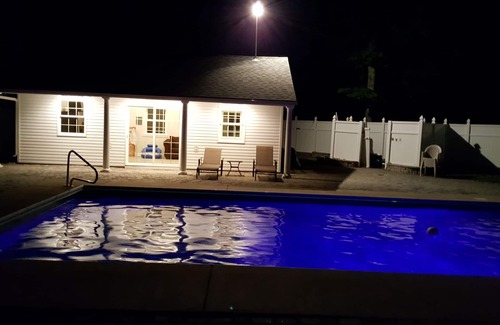 Your home away from home is located in the heart of the Poconos. The home is no more than 5 or 10 minutes to all the best dining, attractions and shopping. This modern house is very well maintained. This is a smoke free home but we do permit smoking on the closed/heated back deck are. No pets unless they are service pets and we will ask that you provide paperwork. The home sleeps 14 but if you have extra guests you will need to discuss this prior to booking as there will be an additional fee. This is a private community but the pool and pool house you see comes with the house and is exclusively for you and your guests during May - September weather permitting. We also offer heating of the pool for an additional fuel charge of $300 per stay. All bathrooms are stocked with hand soap and starter toliet paper. We also provide garbage bags and liners in all garbage pales. We provide starter shampoo and soap. All linens and towels are provided. Feel free to bring your own but i can assure you they are new and clean. There is a theatre/game room in the basement. Regulation pool table, darts, card/game table and large screen 65" TV. We have some DVDs but they may not be your taste so feel free to bring your own. TVs are in 4 bedrooms upstairs and in main living room and basement. Some games are in the home (in the blue carpet room) such as operation & monopoly.