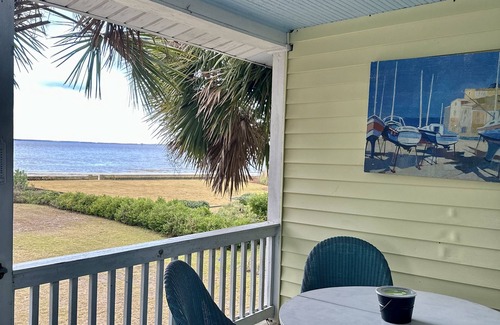 Our 2nd floor unit has the best views on Sullivans Island while optimizing privacy. Watch large vessels that enter and exit the harbor pass silently by the front yard. Dolphins can be seen swimming by most days. And look across the water to Fort Sumter- where the first shots of the Civil War were fired. The views are truly magical. The beach is lovely and generally only occupied by the small number of residents and visitors at the western end of the island. The cottage is situated right next door to historic Fort Moultrie which has many acres of lightly used grounds and paths that make for what seems like a private park. The beach going east is undeveloped for over a mile as the maritime forest and trails make for a mostly barren area. Walking west of the cottage you will see historic island homes, views of Ft. Sumter, downtown Charleston and the Ravenel Bridge. This quiet street and peaceful space is perfectly suited for young families and empty nesters. This is your opportunity to enjoy one of the few beachfront condo rentals on Sullivan's Island.