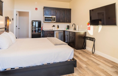 Inside every Dwelling, you will find a great balance of modern designs, classic touches, and technology features. This unit can accommodate up to 3 guests with a king bed and a pullout sofa sleeper.
