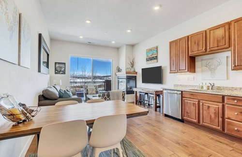 Curl up around the gas fireplace, watch a movie, or head out onto the balcony from your sleek upstairs living area. A new BBQ and Plywood furniture are just a few of the recent upgrades made to this Park City get away. Perfectly situated balconies allow views of Uinta Mountain peaks, and the Swaner Eco Center nature preserve. Hardwood floors continue into the modern kitchen, where you’ll find stainless steel appliances and all the necessities for dinner prep, then savor your meal in the adjacent dining room, with seating for 4. (two additional stools for extra guests)