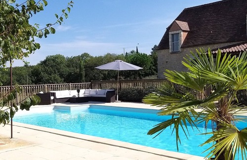 In the Lot, near the Dordogne valley and ideally located between Sarlat and Rocamadour, the Poujades is a beautiful property on 2.5ha including a Perigord house, its dovecote and barn renovated as a holiday home of 250 m² with swimming pool private, its 4 bedrooms each with a bathroom or shower room with toilet, 2 stays, game room with American billiards and table football and super equipped kitchen for 10 people. Large covered terrace. The cottage is classified 3 ears to the lodgings of France. The dominant position ensures sunshine with beautiful views of the valley. The property is located in a beautiful hamlet without traffic !!! For lovers of nature, countryside and open spaces, while being 5 minutes from shops. The house has a private pool, fenced and heated filter salt. The estate is located in a region of great wealth by its historical, cultural and natural heritage. You will also discover the typical gastronomy that invites you to many tastings.