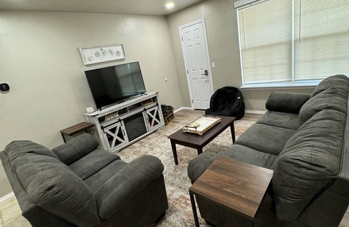 This duplex has 2 bedrooms and 1 bathroom. Duplex located in a safe and peaceful neighborhood. Both bedrooms have queen beds. Bathroom is located in-between bedrooms. Laundry room is equipped with washer and dryer. Central heat and air. All utilities available with wifi and two free parking spaces. Absolutely no wasted space in this simple design.