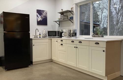 Each level (3 levels with 3 bathrooms/showers) of this 2600 SF newly built home has a covered porch facing the sunset colors peeking through the cedars. A perfect spot to breathe deep, let your shoulders relax, and uncork a bottle from the neighboring winery. With 2 kitchens and multiple living areas the house works well for groups wanting extra space.
