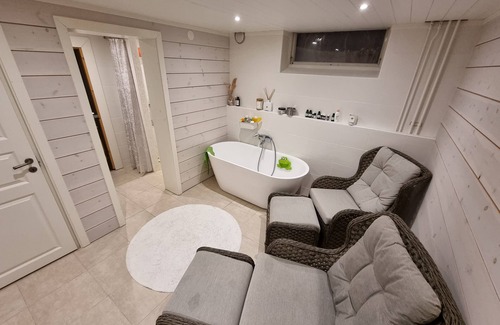 Big House in Östersund, Double Garage Connected to the House, Near Storsjocuppen is located in Ostersund. Big House in Östersund, Double Garage Connected to the House, Near Storsjocuppen provides accommodation, featuring Fireplace/Heating, Entertainment, Barbecue/Outdoor Cooking, among other amenities. This House features Fireplace/Heating, Entertainment, Barbecue/Outdoor Cooking, to make your stay a comfortable one.
