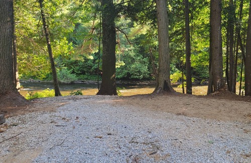 This cabin has no bathroom. Campground bath/shower house is just a short walk away.