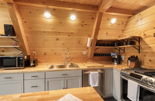 A well-equipped kitchen allows you to prepare your meals amidst the treetops, complete with all the essentials you need to cook up a delicious feast. Dine al fresco on the spacious deck, where you can savor your meal while listening to the gentle rustle of leaves and the chorus of birdsong.