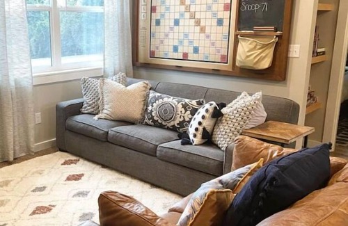The guest house is above our 3 car garage, with the washer and dryer in the bathroom closet of the apartment. Decorated by new and up-cycled higher end materials, this space has been a personal joy to create! One could say we leaned into the "Put a bird on it" parody from Portlandia.