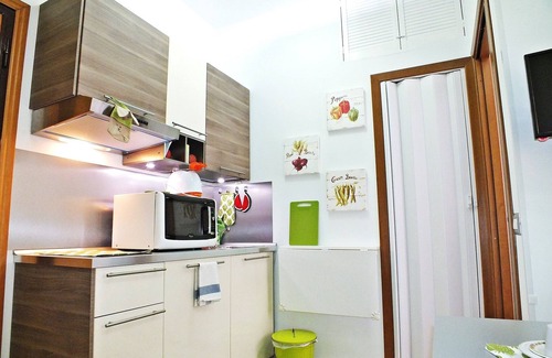 • 2nd bedroom with a double bed, air conditioned, lockable door for maximum privacy, Tv Led, heating, kitchen corner with stove, fridge, freezer, microwave, Italian coffee machine (moka); these room has the function of living / dining room with sofa, table and chairs.