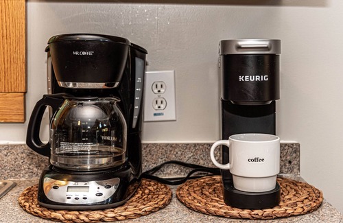 If quiet is what you seek take advantage of the comfortable living room, catch up on a good book by the light of the fireplace crackling in the background.