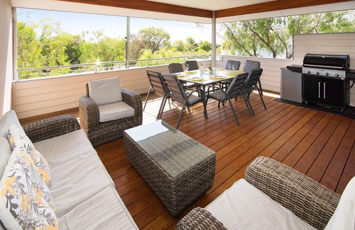 On entry to Blissful Bay quality awaits you, starting with solid wood stairs that lead up to the bright open plan living area and its fully equipped kitchen appointed with all electric appliances, ideal for preparing the family meal whilst socialising with your fellow guests. When your meal is ready, enjoy eating around the eight seater table inside, or on those lovely evenings you could sit around the outdoor setting on the expansive balcony whilst taking in the views of the sparkling waters of Dunsborough Bay, or watching the children at play in the secure garden below.