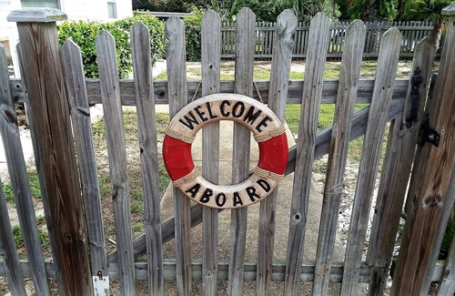 The home is tastefully furnished and well-equipped with an updated kitchen, leather power-reclining sofas, washer/dryer, 55” flat screen television in the living area, 32" flat screen TVs in both bedrooms; and unlimited use of wireless, high-speed Internet and cable. Step outside the sliding doors onto the large, deck with an outdoor dining table and a grill for cooking your fresh catch of the day. The property also has a detached garage, an outside shower head and hose to rinse off the sand, and a large, grassy picket-fenced yard to accommodate children and/or pets (nonrefundable deposit required.)