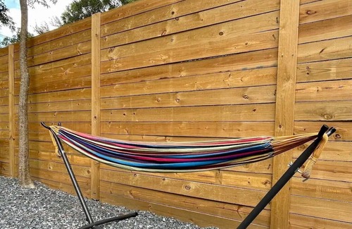 Escape to this serene container retreat in Gainesville, 2 miles from UF stadium. This perfect 1-bedroom hideaway features a cozy queen bed, a relaxing living room with a queen sofa bed, and a modern bathroom with a shower. Enjoy the convenience of amenities like, AC, Wi-Fi, 42" flat TV and outdoor hammocks for stargazing. Immerse yourself in the fantastic surroundings and unwind in this peaceful setting. Your stay here will be nothing short of delightful. Feel free to reach out to us during your stay - we're happy to suggest local spots to check out.