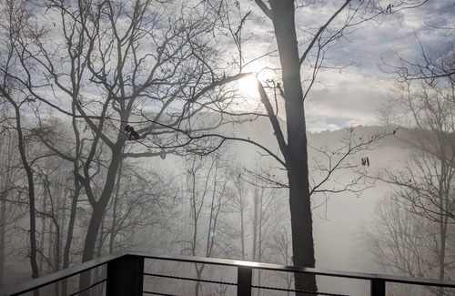 Unique watch tower nestled in the forest overlooking Mill Creek falls on lake Glenville. Like staying in a tree fort with modern luxuries, Relax to the subtle sounds of distant waterfall and gentle breezes that flow through this open air cabin. Perhaps you will be visited by the elusive Blue Ghost Firefly's inhabiting this region.