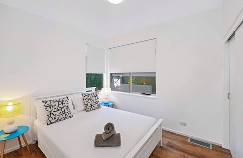 The cabin at the rear of the property has another lounge room with a large television and 3 bedrooms - just right for the teenagers. Two king single beds in each room. There is also a brand new bathroom in the cottage.
