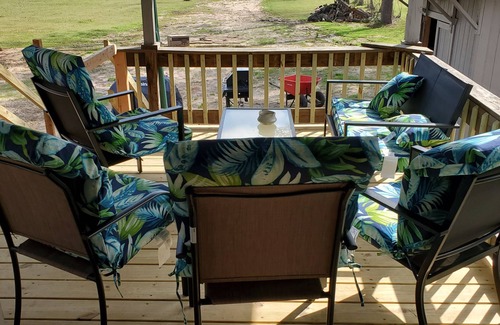 The home is waterfront so bring the water toys to enjoy Lake Palestine. The home has a covered large deck with fans for the afternoons and evening gatherings. A morning sitting area to soak up the early sun and a firepit to enjoy the evening hours. A large living room, dining room, large and kitchen, three bedrooms,(all with queen beds). Internet and Satellite TV.