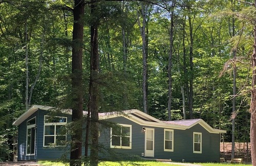 The Blue House is new construction, so everything is clean and new -- you will be impressed (an incredible value since it just recently opened up for rental). Over 1330 s.f. with 2 bedrooms (plus an office/den and laundry room) and 2 full bathrooms. Both bedrooms have queen beds (brand new mattresses and bedding). The highlight of the Blue House is the spacious open concept kitchen, dining and living area. The large living room with fireplace and 50" smart TV is amazing, as is the huge kitchen and dining area (with lovely views of the woods from the large windows and sliding glass doors). Central AC and heat to ensure you are always comfortable, and a new washer and dryer in the laundry room. The kitchen is very well stocked with just about anything you need. The beautiful outdoor areas is wooded and private (you are nestled into a forest of maples, birches and cedars). An outdoor fire pit, patio dining area, and a gas bbq grill ensure you can enjoy the birds and trees in your own private outdoor paradise.