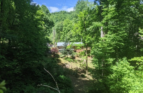Just the mountain get away you've been looking for! A small cabin with a beautiful back porch view, a small creek on the property, serene woods. Located 2 miles away from Lake Glenville public beach or Glenville Marina, 7 miles from Cashiers crossroads and just 30 minutes drive to Highlands. Master bedroom offers a queen size bed, as well as does the guest bedroom. Master bathroom has a shower, where the guest room has a shower with a bath. Living room has a sleeping sofa which can accommodate additional one or two guests. It's a wonderful romantic couple getaway, a suitable place for 2 couples or a family with children. Total square footage of the house is 1200 sq ft.