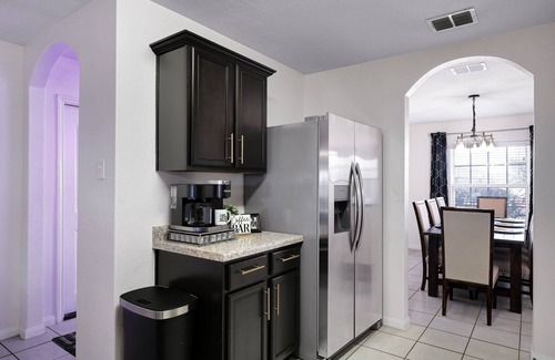 Our music-themed vacation home in San Antonio, Texas, is the perfect blend of comfort and character! This charming retreat features three beautifully decorated bedrooms, each with a king-sized bed, including a king suite with a private bath. The spacious living area is adorned with musical artwork and offers plenty of room to relax, along with a fully stocked kitchen and two modern bathrooms.