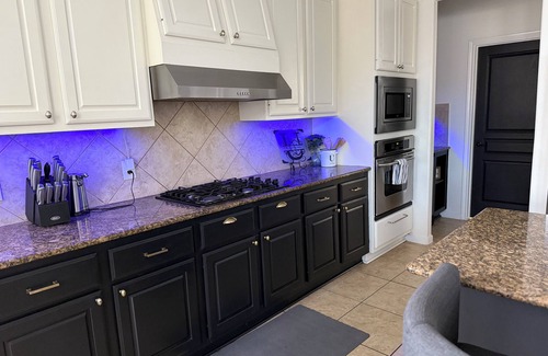 Escape to the Blue Oasis! This luxurious 4-bed, 3.5-bath retreat sleeps 10. The private backyard paradise features a heated pool, spa, and fire pit. Inside, enjoy a smart home with fast Wi-Fi and smart TVs everywhere. The kids will have a blast in the dedicated playroom with games and a bounce house. Near Old Town Tomball, The Woodlands, and just 20 mins from IAH. The ultimate getaway awaits!
