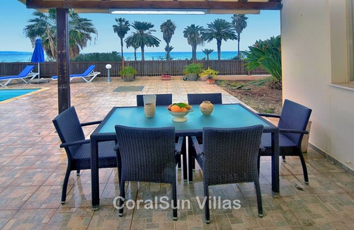 This stunning villa is located less than 50 meters to the sandy beach and provides large private pool and garden.