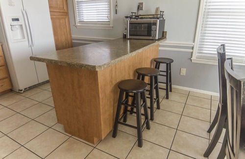 Our fully appointed kitchen is a chef's delight and is spacious enough for several cooks to get into the action. With all the major and minor appliances, gadgets, utensils, and cookware you need to prepare and serve just about anything, it may tempt you to fry up the catch of the day instead of eating out! Granite countertops, custom wood cabinetry and all the nice little extras that make cooking more of a pleasure than a chore are waiting for you here.