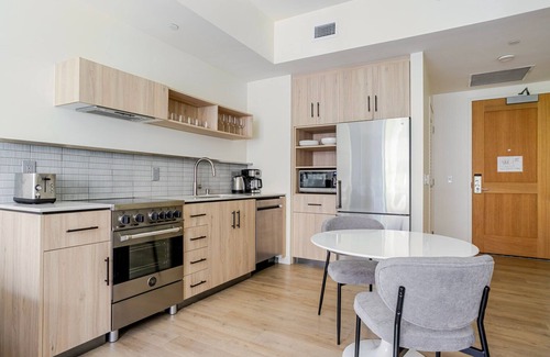 As with any Blueground apartment, you’ll find a thoughtfully designed space complete with beautiful furniture and a fully equipped kitchen in this one bedroom property. And, thanks to our superior quality mattresses, luxury linens, and towels, you can relax knowing you’ll always feel comfortably at home. When you’re ready for some fun, you can take in the Los Angeles vibes or bring the entertainment to you with the premium wireless speaker or smart TV. This apartment also offers in-apartment laundry.