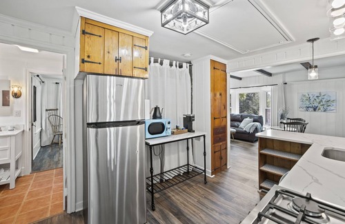 The Cottage at Bluemont Escape is located in historic Loudoun County and includes a full kitchen, two bedrooms, a hot tub, and a private patio. This home sits on five acres with two other units.