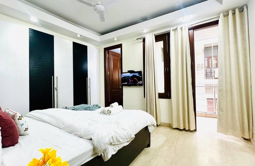 The entire Apartment is yours, absolutely no-sharing with anyone else. Completely Private, Independent and without any access restrictions, your very own home in Delhi!