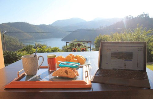 Casa do Barco offers a recent villa accommodation with a wonderful panoramic view of the river Zêzere, we have 3 large bedrooms (two with double bed, one with double bed and single bed) all equipped with air conditioning, TV and fitted wardrobes. , 3 full bathrooms (one en suite), fully equipped kitchen with fridge, hob, oven, dishwasher, coffee maker (delta Q capsules) and microwave; with washing machine, a huge living room with a dining area and a living area with sofas (two of them with bed), TV, DVD, air conditioning and internet (WIFI) all to make you feel comfortable.