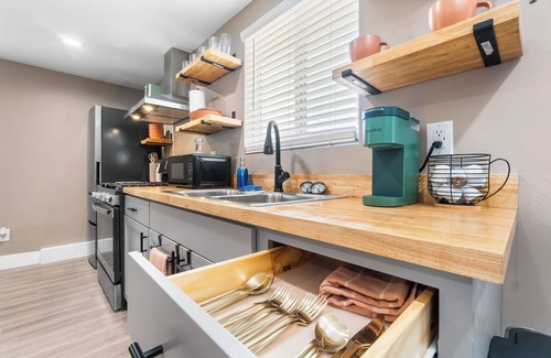 Escape to our chic and stylish studio, designed with a modern Art Deco touch that promises a relaxing and private retreat. Whether you're looking for a weekend getaway, a staycation, or a comfortable spot while in town for work that is close to downtown Visalia area, our space offers the perfect blend of comfort and convenience.