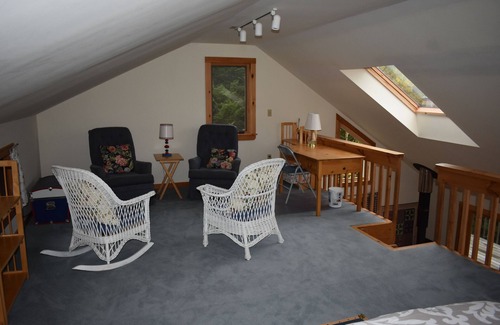 Cottage features 2 bedrooms on the first floor with more sleeping room in a large loft (accessible only by a ladder). The sitting area and kitchen are well appointed and comfortable.