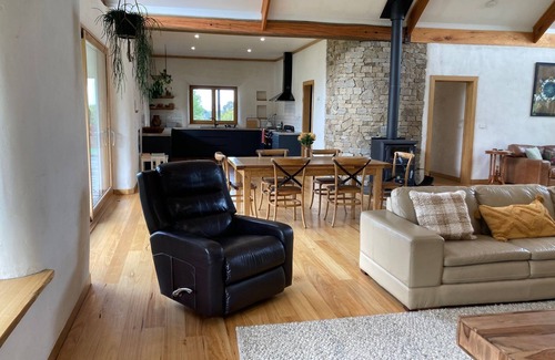 The hybrid straw bale house was built by hosts, Chris and Michelle with sustainability and comfort in mind. All natural materials used.