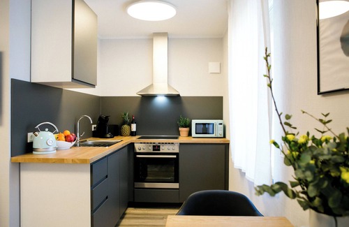 Fully equipped kitchen: Modern appliances, a high-quality oven, microwave, and stylish design make cooking a pleasure.