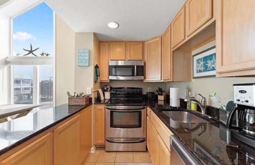This clean, bright, open, airy, and freshly painted former Model Unit condo is the perfect place to spend your vacation. Enjoy your coffee while relaxing on the balcony or the perfect spot for evening cocktails while taking in the Ocean AND Bay views.