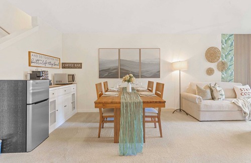 The focal point of the home is an ideal setting for a relaxing time. Natural sunlight accents the modern furniture and light wooden floors enhance the elegant style. Sit back and decide if you will watch a movie, or just relax on our sofa! Not to mention YouTube TV with 80+ live channels, Netflix, and Disney+, they are all free to you.