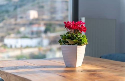 Our house is located at Lygaria Beach in a unique position which offers a breathtaking view. The house has 2 floors and 6 verandas around the house. The 1stfloor includes 3 bedrooms with king-size double beds and one with 2 single beds. In the ground floor, there is a large comfortable living room with a 6 person sofa and a table with six chairs. There is a 55 inch smart TV, Wifi, a fully equipped kitchen. The house includes two bathrooms. The veranda has a six-chair table and two sunbeds.