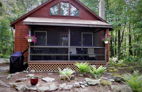 If you are looking for a private, quiet retreat, that's only 15 minutes from Deep Creek Lake, Wisp Resort, shopping, etc this cabin is for you. Inside the cabin you'll find a well equipped kitchen, a large living area with a wood burner for cool evenings, a laundry room, a loft bedroom, and a bathroom with shower/tub combo. Outside there's a screened porch with chairs, a campfire area, a hammock, beautiful boulders. We've cleared a trail through the woods that leads to a bench for wildlife viewing or just relaxing.