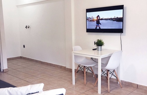 Incluye entre otros: smart TV y sistema RoKu, WiFi, tabla y plancha, aire acondicionado, detector de humo, closet con tablillas, artículos de limpieza como escoba, recogedor, cubo, mopa.