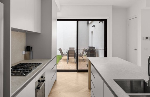 Milk & Honey is an exquisitely appointed townhouse situated on the border of Camberwell and Glen Iris, providing a modern and comfortable retreat for guests. The stylish interior of this 3-bedroom, 2-bathroom home showcases tasteful decorative pieces and furniture, creating a chic and inviting atmosphere. The spacious open-plan kitchen, dining, and living area seamlessly flow to a courtyard with outdoor seating and a BBQ, making it an ideal space for entertaining or relaxation.