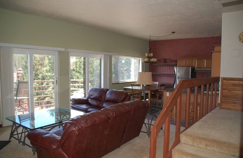 Specs: Master bedroom has a new King size bed, flat screen t.v. with 3/4 bath. Second bedroom has two bunk beds (twin on top, double beds on the bottoms) with full bath located in the hall. Kitchen has granite and new cupboards, full size appliances and all eating/cooking utensils. Living room has two couches, flatscreen television, wood burning fireplace and large deck. Complex has three clubhouses with indoor pools, hot tubs, game rooms, and a laundry facility which takes coins, google pay, apple pay or credit cards and is 20 yards from unit. Free high-speed internet access, and cable in the unit. 15 minutes to Keystone, 25 to Breckenridge and 35 to Vail. Cross country skiing/hiking trails all around condo. This vacation rental is located at the Buffalo ridge complex at Wilderness in Silverthorne, Colorado. The Summit Stage Express is a free shuttle service that services Breckenridge and Keystone. It stops right at the front of the complex.
