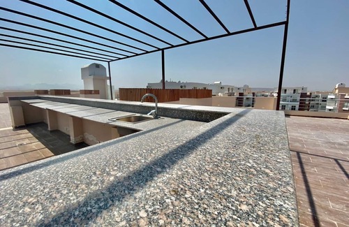 Enjoy a stay in this beautiful apartment. This inviting property features 2 bedrooms ...+1 bathroom , in a brand new compound , the apartment located 5 minutes away from elgouna and all kite surf schools , and 15 minutes away from downtown , there is an rooftop BBq area + jacuzzi as well , elgouna is 5 minutes away so you can enjoy all activity's you interested in ,summer time is the best period when you can have your idol holiday.