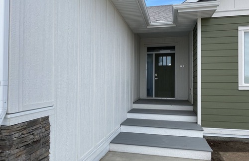 This beautiful new home is the second situated on the shore of Payne Lake just outside of Mountain View, Alberta and within 10 minutes from the entrance to Waterton National Park. Perfect for a couple wanting to get away or a large family gathering for a week or two. Close to other attractions like Cardston, Fort Macleod historical fort and Head Smashed in Buffalo Jump, and Castle Mountain ski resort. Summer water activities are ideal outside your back door and this lake also is a popular site for ice fishing in the winter. Wooded areas are within walking distance as well. Sleeps 8. Please inquire regarding additional visitors and relevant fees.