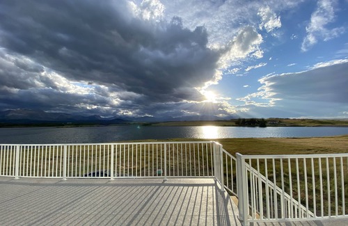 This beautiful new home is the first situated on the shore of Payne Lake just outside of Mountain View, Alberta and within 10 minutes from the entrance to Waterton National Park. Perfect for a couple wanting to get away or a large family gathering for a week or two. Close to other attractions like Cardston, Fort Macleod historical fort and Head Smashed in Buffalo Jump, and Castle Mountain ski resort. Summer water activities are ideal outside your back door and this lake also is a popular site for ice fishing in the winter. Wooded areas are within walking distance as well. Sleeps 8. Please inquire regarding additional visitors and relevant fees.