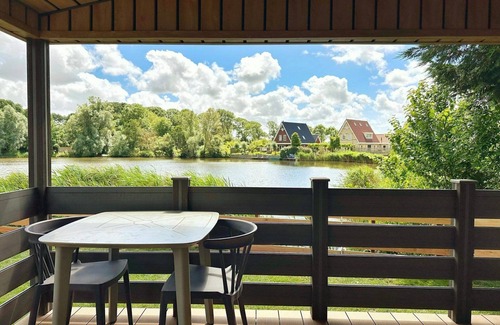 This brand new, top-quality chalet offers an unparalleled holiday experience with a terrace right on the water. Relax on your terrace and enjoy an evening meal with a beautiful view. Inside, you will find a cozy living room with a spacious, open kitchen that is fully equipped with modern amenities, including a dishwasher and microwave.