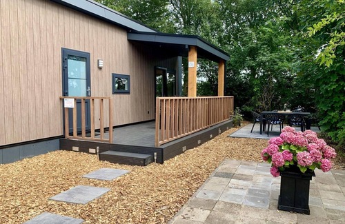 Tranquillity, space and luxury 🤩This beautiful, spacious and modern chalet was completed in June 2024. It is located in a beautiful spot on the edge of Park Campanula surrounded by greenery. In spring, you will also enjoy the view of the bulb fields there. With high ceilings, high-quality bright finish and large windows, you will experience plenty of light and space. A chalet that feels like a real home. The exterior has a modern wood finish, giving the chalet a natural and luxurious look. There is a terrace with garden table and 6 garden chairs, the covered veranda with cosy lounge sofa allows you to enjoy the outdoors in all weathers.