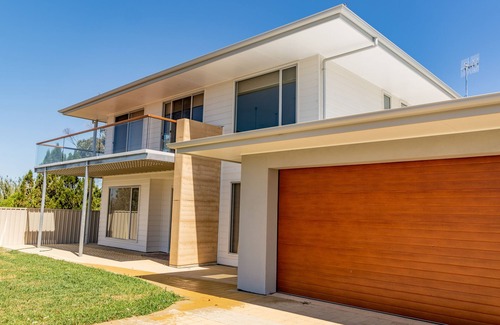 It is our great pleasure to invite you to take a holiday-break for some well-deserved rest and rejuvenation. Our Thomas Street home at Middleton Beach has 360 degree views from the surrounding green hills to the bright blue sea. This brand-new, ecologically designed, rammed earth home has been decorated with spectacular indigenous art (for sale by request). We are offering you 4 large bedrooms, two with ensuites and private outside entry. There are fantastic entertaining spaces with polished concrete floors. The cook’s kitchen has first-class appliances. There are comfortable furnishings throughout, as well as a lovely piano to enjoy. Bi-fold doors open onto a screened and gas-heated rear deck. Why not relax in the professional series swim spa, then enjoy the entertainment system while you rustle up a fun and easy dinner on the barbecue where there is also easy access to cool refreshments from the bar-fridge. The property also offers secure double garage parking (with a freezer for the fishing enthusiast), as well as ample space for a boat.