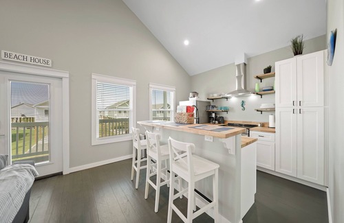 Welcome to 7 Summers! You will be welcomed by these beautiful, newly built villas! The house has a gorgeous deck with adirondack chairs to look out to the gulf or the canal, whatever fits your fancy! Walk in to the living room with a pullout couch, smart tv and a speaker end table so you can play your favorite jams while hanging with your family and friends!