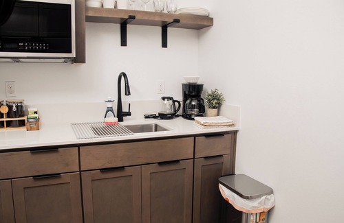 The fully stocked kitchenette comes with essential amenities including dishes, wineglasses and many more. We have complimentary coffee (medium roast and decaf), tea, sugar, and creamer available to help kickstart your day.